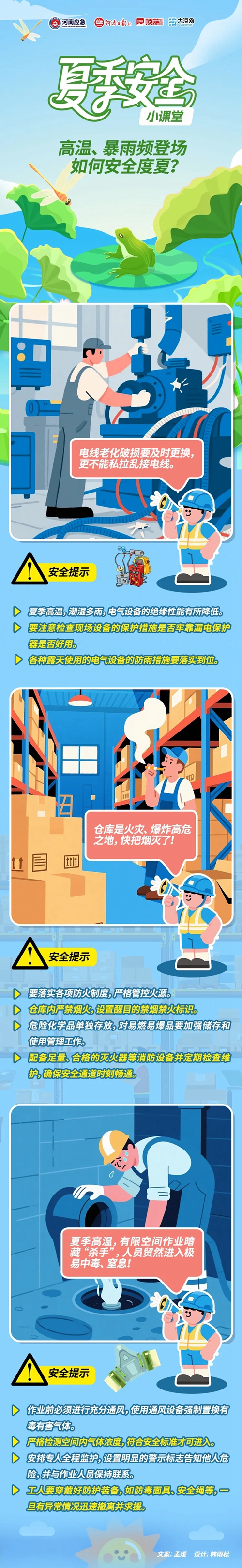 夏季天氣炎熱,同時(shí)暴雨、雷電等天氣逐漸增多,生產(chǎn)現(xiàn)場(chǎng)高溫、潮濕,容易導(dǎo)致各類事故發(fā)生。這樣的天氣條件下暗含哪些安全生產(chǎn)隱患?炎炎夏日,生產(chǎn)過(guò)程中需要重點(diǎn)防范些什么?一起來(lái)學(xué)習(xí)——