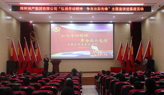為進一步深化市國資委“黨的創(chuàng)新理論萬場宣講進基層”活動,培育和踐行社會主義核心價值觀,10月14日下午,鄭州地產集團“弘揚勞動精神 爭當出彩先鋒”主題宣講活動在西流湖公司中原新區(qū)聯(lián)合黨委基層黨校成功舉辦。集團宣講團成員、西流湖公司黨支部、鄭地發(fā)展公司員工及中原新區(qū)項目參建單位代表共120余人參加活動。