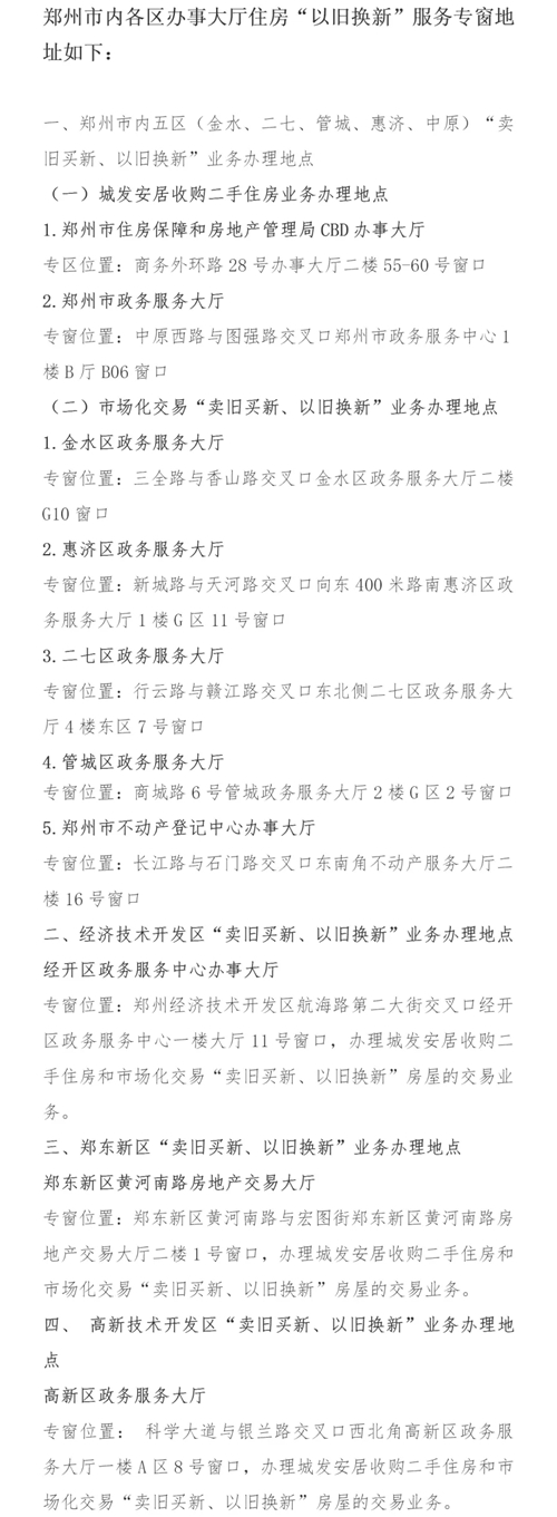 鄭州市內(nèi)8區(qū)10個(gè)辦事大廳全部開(kāi)設(shè)住房“以舊換新”服務(wù)專(zhuān)窗