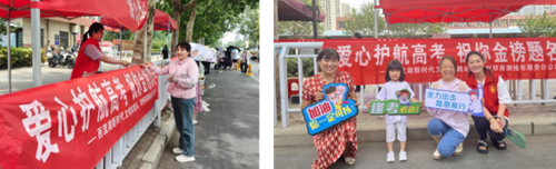 “愛(ài)心助考點(diǎn)”服務(wù)站內(nèi),高考專用尺、簽字筆、鉛筆、橡皮等文具整齊擺放,為考生解決不時(shí)之需。志愿者們身著統(tǒng)一服裝,手拿“逢考必勝”“加油,你一定可以”“全力出擊 踏歌前行”等祝福手卡,用微笑表達(dá)對(duì)高考學(xué)子的祝福。