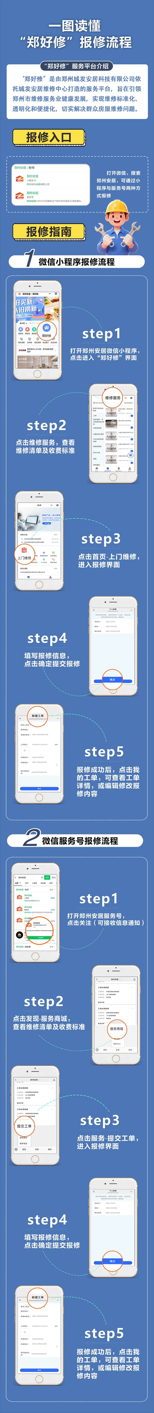 為切實(shí)解決群眾房屋維修難題,推動(dòng)鄭州市維修服務(wù)業(yè)邁向標(biāo)準(zhǔn)化、透明化、便捷化發(fā)展新征程,由鄭州城發(fā)集團(tuán)下屬子公司鄭州城發(fā)安居科技有限公司精心打造的“鄭好修”服務(wù)平臺(tái),正式上線運(yùn)營(yíng)。市民通過(guò)鄭州安居微信小程序、鄭州安居微信服務(wù)號(hào),即可輕松實(shí)現(xiàn)一鍵報(bào)修,享受優(yōu)質(zhì)高效的房屋維修服務(wù)。