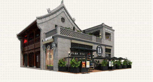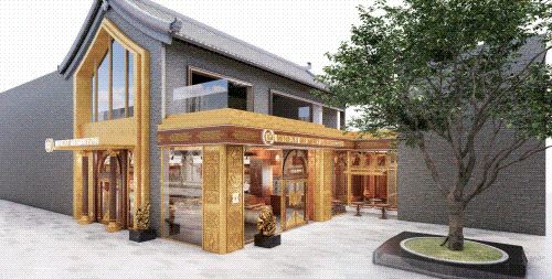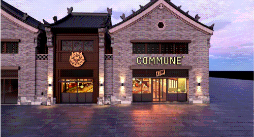 以COMMUNE幻師的門店設(shè)計(jì)為例——從效果圖可以看出,建筑外部以青灰色磚墻復(fù)刻商代建筑肌理,檐角神獸造型融入現(xiàn)代燈光設(shè)計(jì),整體風(fēng)格充滿著古樸與時尚。店內(nèi)則以暖色調(diào)營造松弛感,酒墻擺滿了來自全球的精釀。每當(dāng)味蕾觸碰到精釀的麥香,窗外同時飄入來自3600年前夯土的氣息——在這里,顧客喝的不是單純的酒,而是歷史與現(xiàn)代的奇妙敘事。